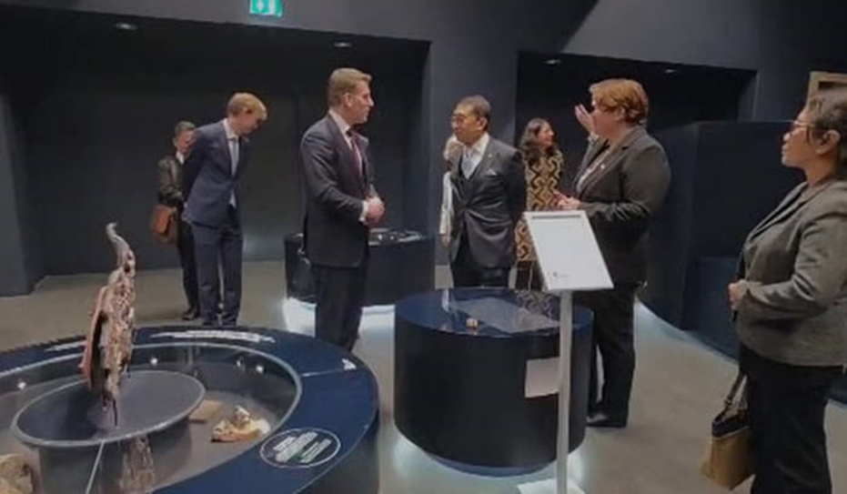 Menteri Kebudayaan Fadli Zon Fadli Zon melihat Koleksi Dubois, termasuk fosil manusia purba Pithecanthropus erectus di Museum Naturalis, Leiden, Belanda.